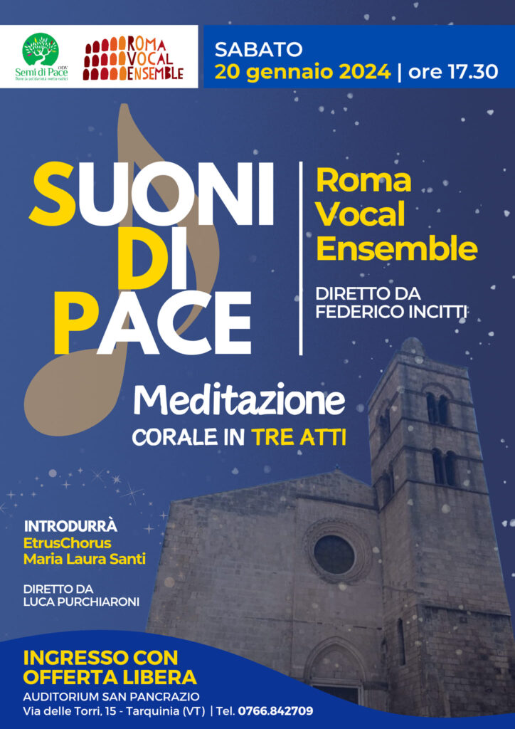 Il concerto “Suoni di Pace” organizzato dall’Associazione sabato 20 gennaio presso l’Auditorium San Pancrazio di Tarquinia ha superato ogni aspettativa, per la qualità delle esecuzioni e la grande partecipazione di pubblico.