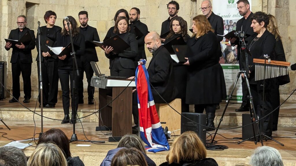 con Federico Incitti alla direzione e al pianoforte e la codirezione di Giulia Catenazzo e di Julia Barlen e con Alessio Vallone e Maria Casario alle percussioni. Il “Roma Vocal Ensemble” ha condotto il pubblico in un viaggio sonoro che a partire dal mondo, da Est a Ovest da Nord a Sud, ha toccato la Svezia, gli Stati Uniti d’America, Cuba e il Sudafrica, per poi ritornare alla fonte primaria, nell’intimità di ciascuno, ed esplodere in un’invocazione d’amore culminata nel coinvolgente brano di Lars Jansson To the mothers in Brazil. Degno di nota il Sicut cervus (a 16 voci) di Lorenzo Donati, eseguito per la prima volta dalla formazione romana proprio in questa occasione.