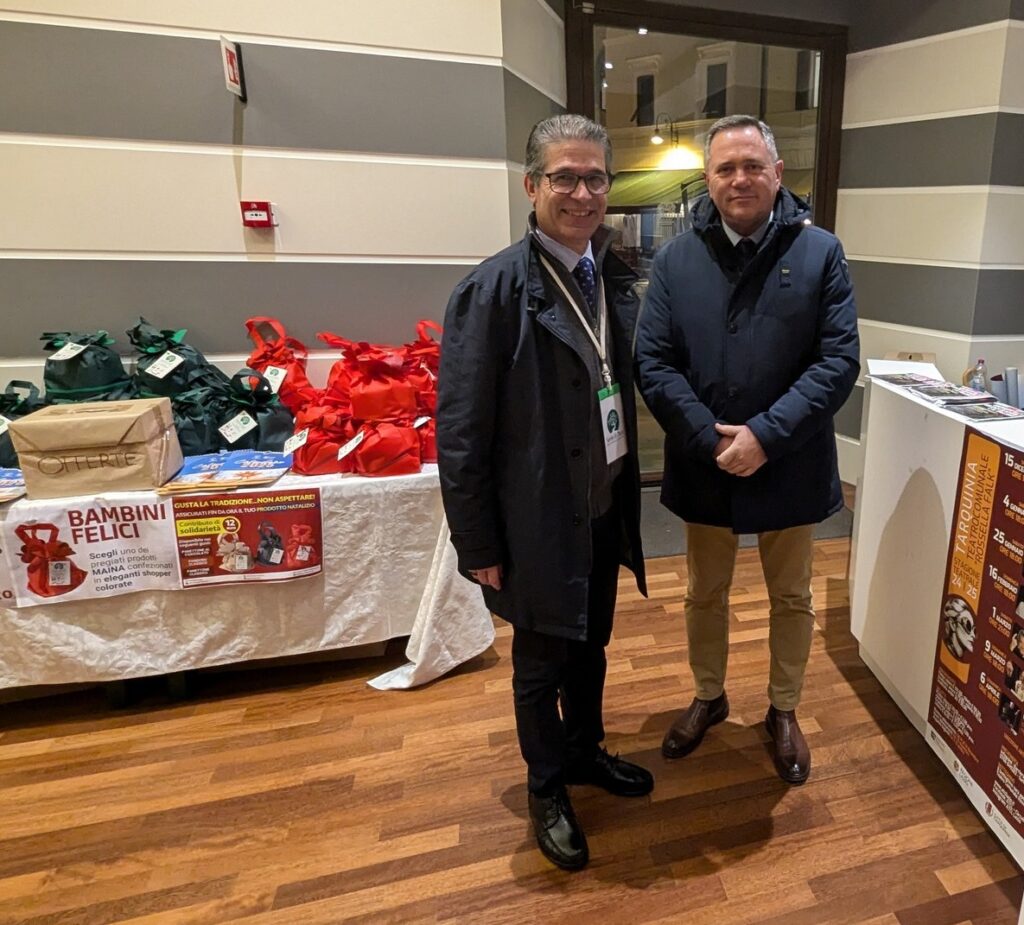 Il presidente dell’associazione Semi di Pace, prof. Luca Bondi, accoglie il sindaco di Tarquinia, dott. Francesco Sposetti