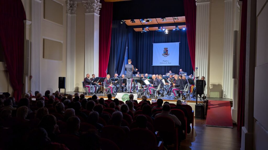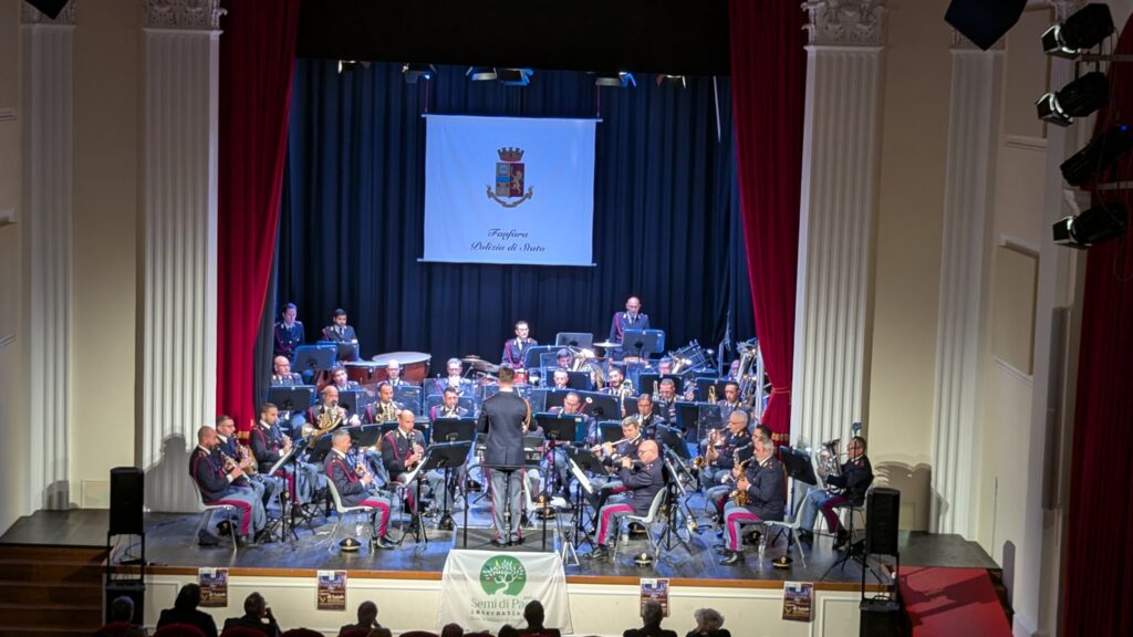 Il concerto offerto dalla Fanfara della Polizia di Stato, presso il teatro comunale Rossella Falk di Tarquinia, ha emozionato e riscaldato i cuori. La finalità importante dell’evento, legata al Progetto Rondini, ha rappresentato bene il valore del Natale che è essenzialmente aprire il cuore e le braccia alle necessità degli altri. Il vasto repertorio dei brani eseguiti, dai bravissimi musicisti e dalla egregia direzione del Maestro Massimiliano Profili ha coinvolto i numerosi partecipanti in un crescendo di applausi che hanno testimoniato la gratitudine più autentica.