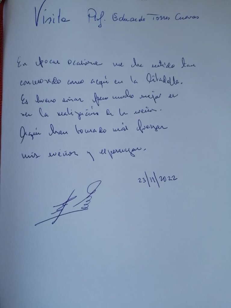 Ricordiamo la sua visita alla Cittadella Semi di Pace, avvenuta nel novembre 2022, accompagnato da sua moglie Patricia e dall’ambasciatrice di Cuba in Italia S.E. Mirta Granda Averhoff.